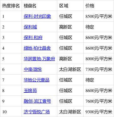 以下是济宁最新楼盘排行榜的部分楼盘列表(按字母顺序排列):